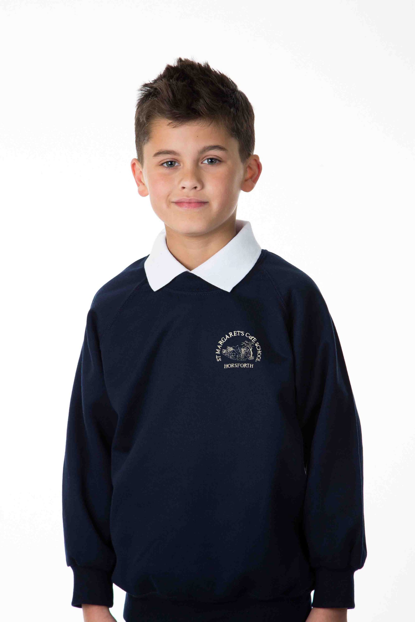 St Margaret’s Navy sweatshirt embroidered with school logo.